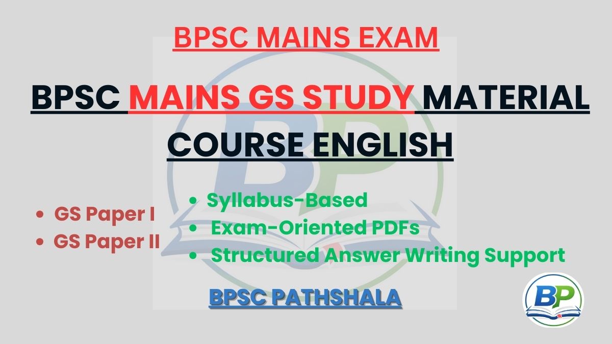 This BPSC Mains General Studies Study Material Course in English is specially designed for aspirants preparing for the Bihar Public Service Commission (BPSC) Mains Examination. The course strictly follows the latest BPSC Mains syllabus and provides well-structured, exam-oriented PDF study material for GS Paper 1 and GS Paper 2.
